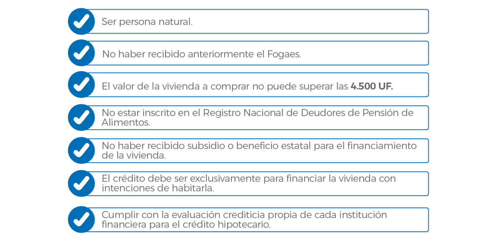 El objetivo del FOGAES o Fondo de Garantías Especiales es apoyar a las familias para la obtención de un crédito hipotecario para la compra de la primera vivienda, buscando de esta forma reactivar el sector inmobiliario.