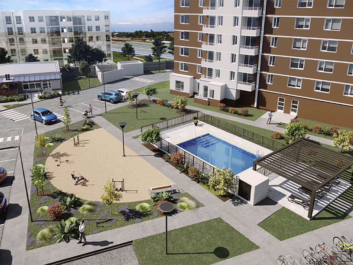 El condominio está compuesto por dos modernas torres de 12 pisos, con departamentos de 1, 2 y 3 dormitorios, diseñados para adaptarse a distintos ritmos y estilos de vida. Su excelente ubicación permite una rápida conexión con el centro de la ciudad, facilitando el acceso a servicios, comercio y equipamiento urbano.