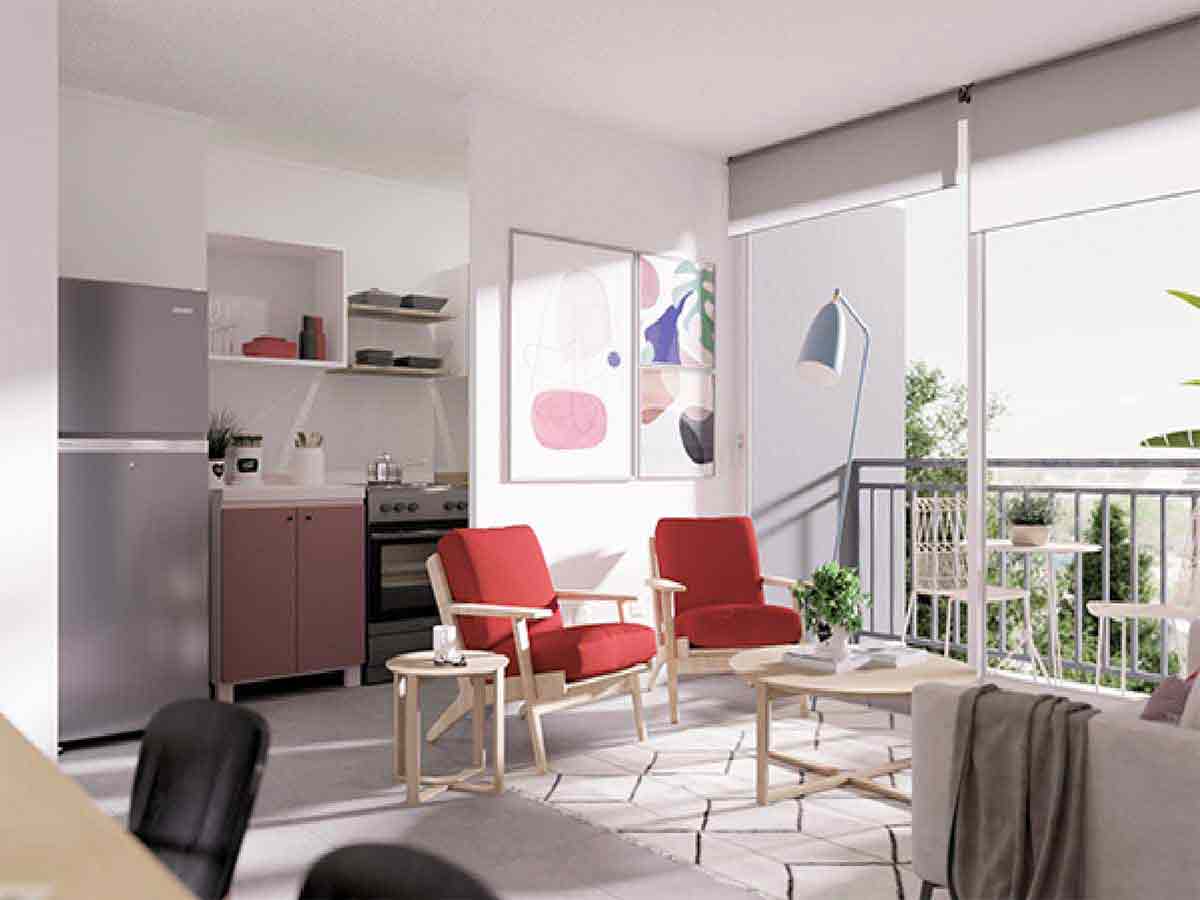 Este condominio de departamentos, está rodeado de un privilegiado entorno que mezcla perfectamente la ciudad, el barrio y la cercanía a parque y rivera del rio Andalién, sector tranquilo y residencial, con excelente conectividad con la ciudad de Concepción.