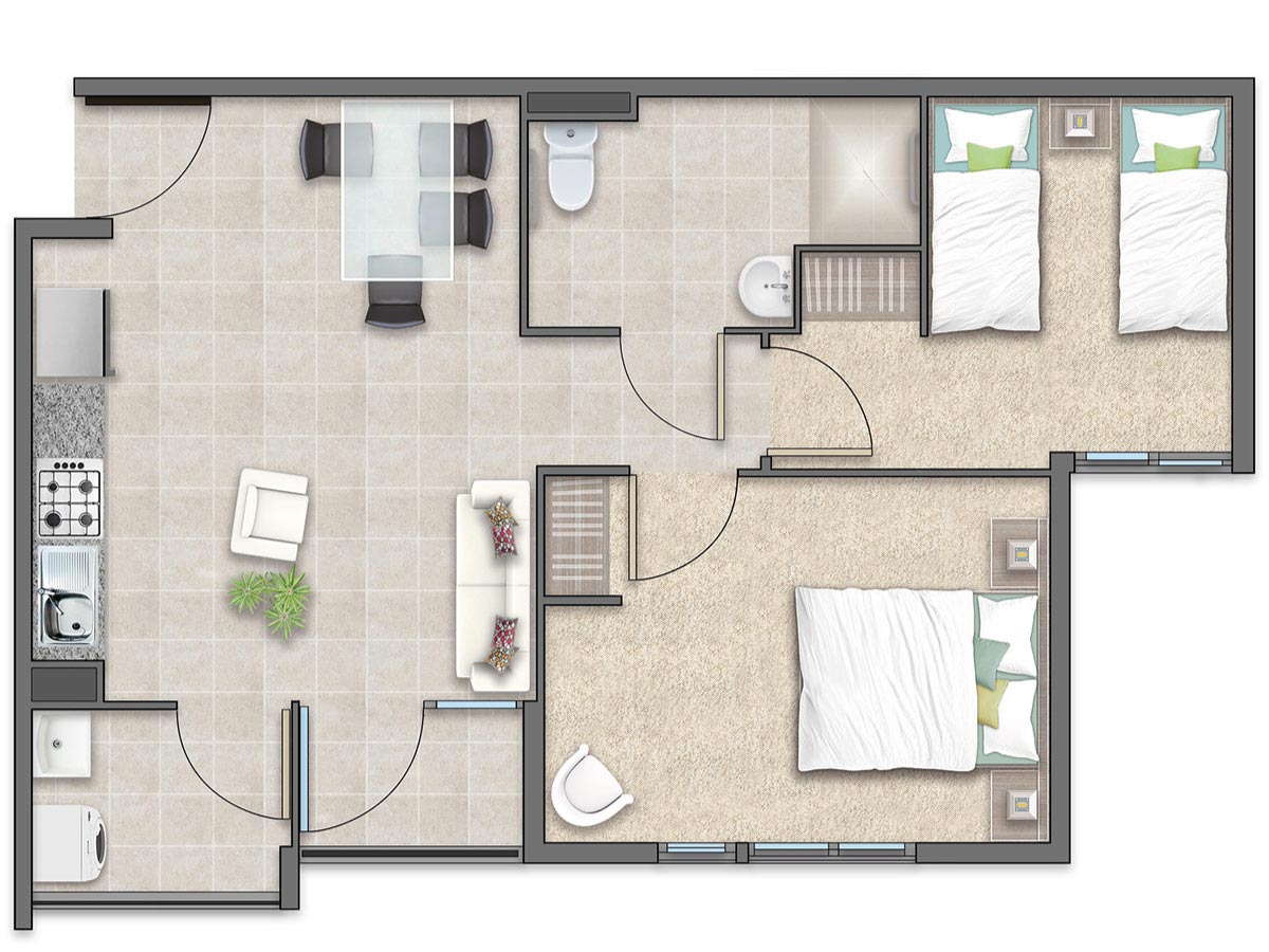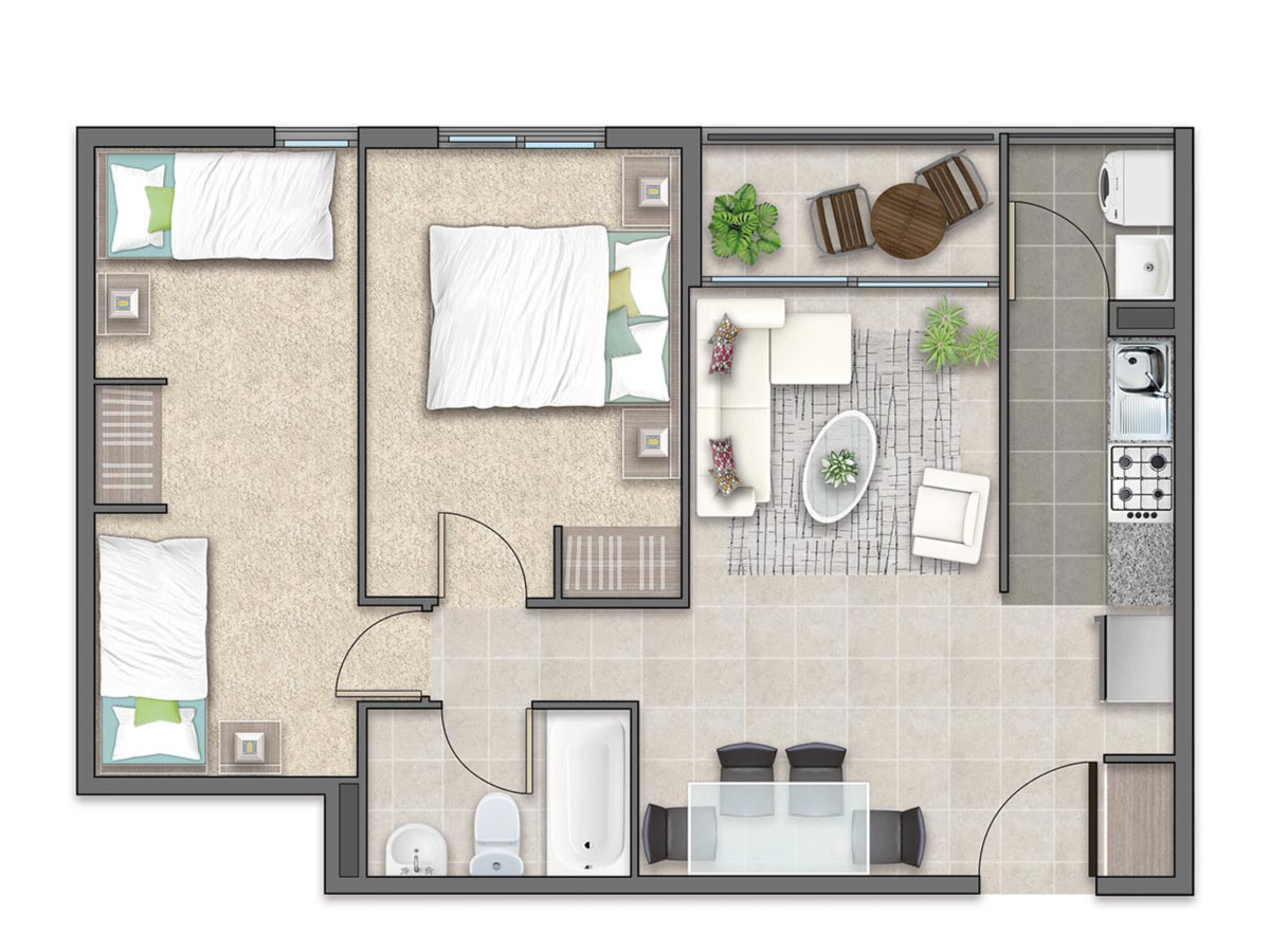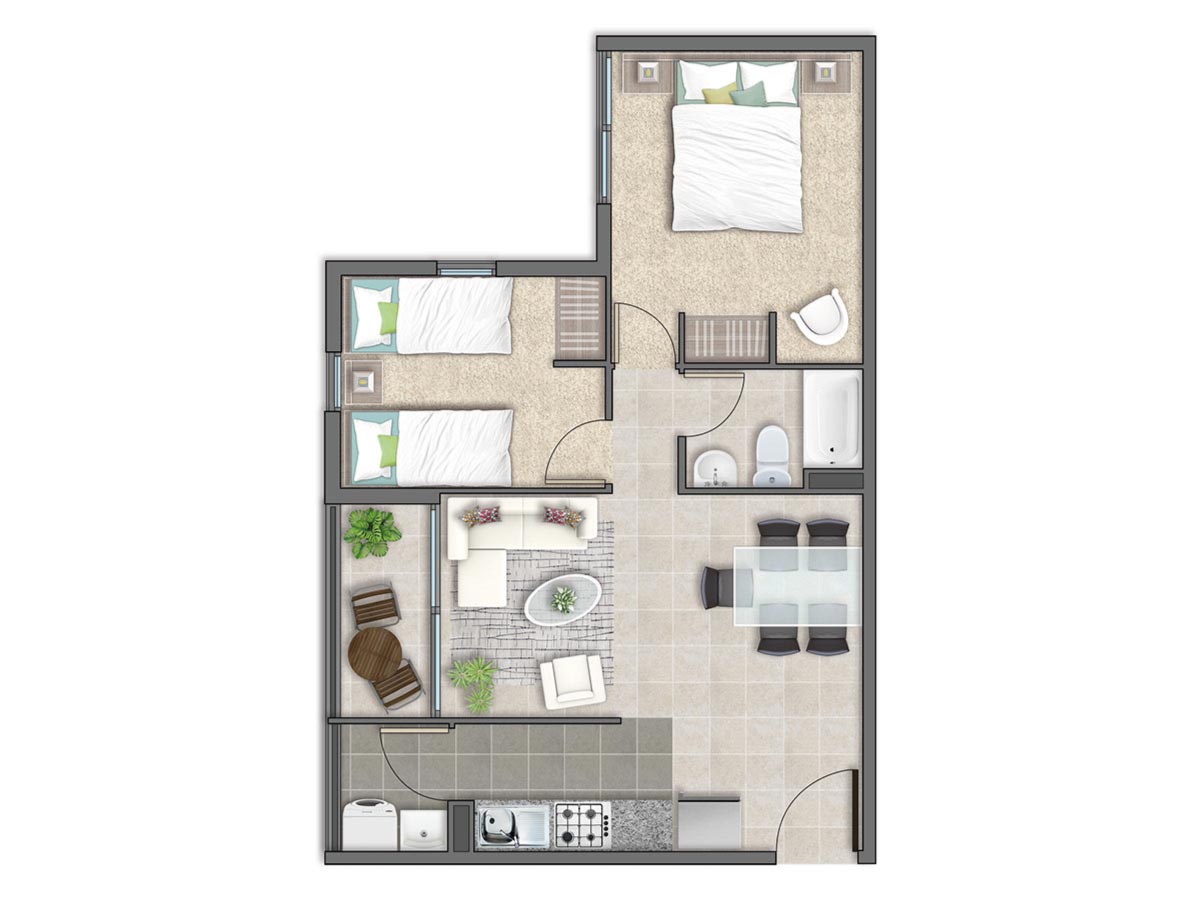 Condominio Titán 2 cuenta con 240 departamentos de entre 56,40 m² y 61,61 m² útiles, con opciones de 2 y 3 dormitorios diseñados para satisfacer diversas necesidades familiares. Cada espacio está pensado para ofrecer funcionalidad y confort, convirtiendo cada momento en casa en uno de disfrute y tranquilidad.