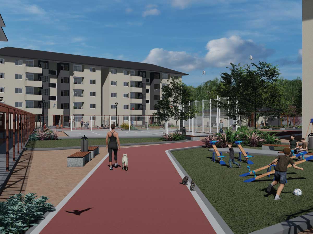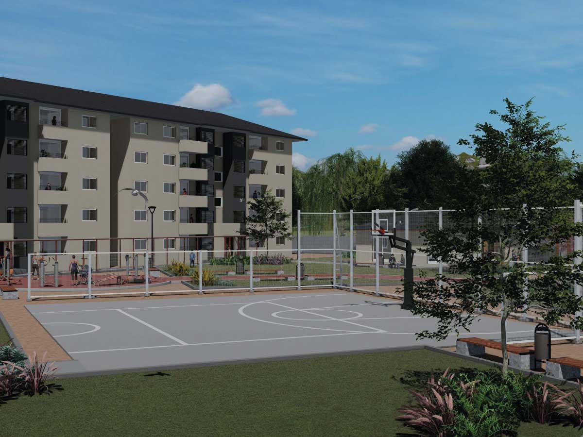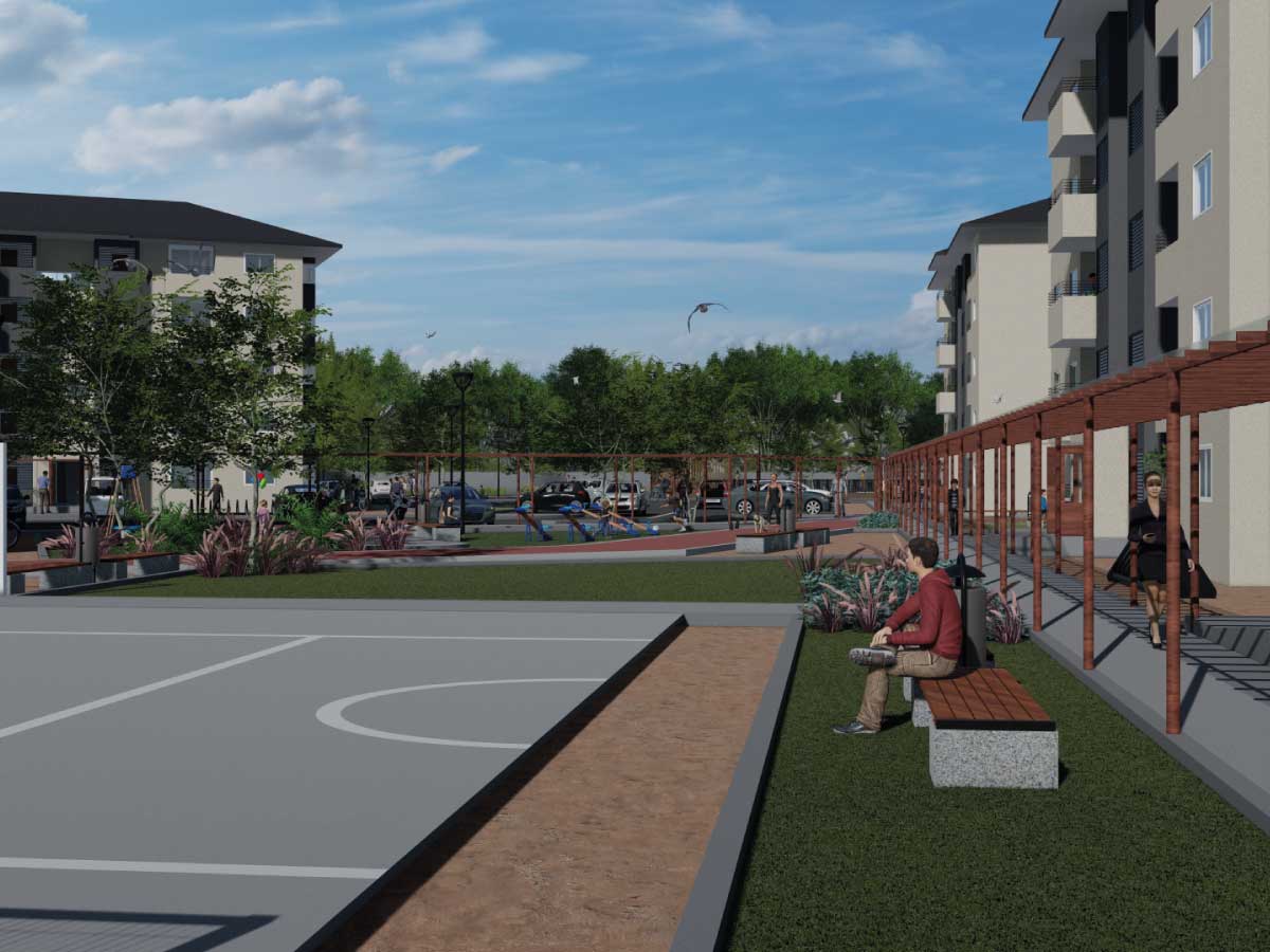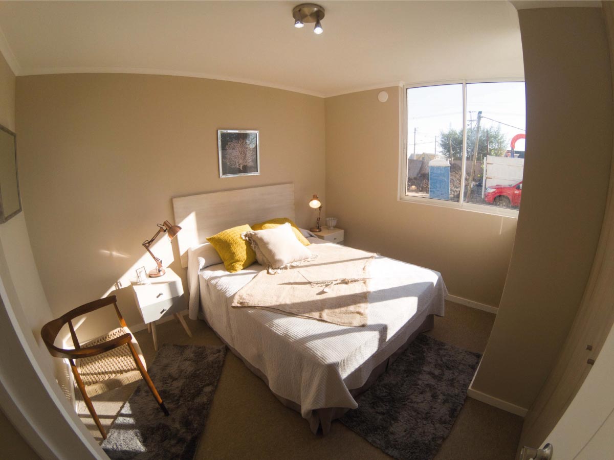 Condominio de 300 Departamentos con Subsidio Automático DS 19. Excelente locomoción, cercano a Colegios, Centros de Salud, Carabineros y Comercio. Piscina, tina de hidromasaje, sendero de trote, juegos infantiles, quinchos, sala de reuniones